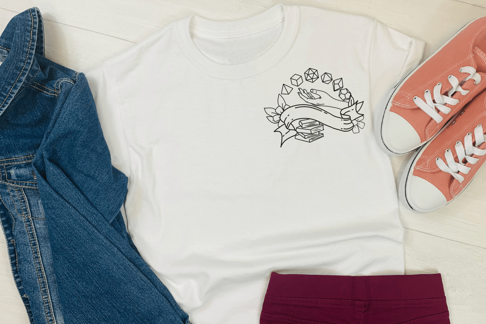Our new range embodies classes from D&D 5e, with a boho feel. Rep your class with a stylish minimalist T-shirt, available in monotone and metalllic prints! The text banner will be fully customisable, and available in several fonts. You can choose to have the class name, your characters name, or even short a catch phrase or quote.
