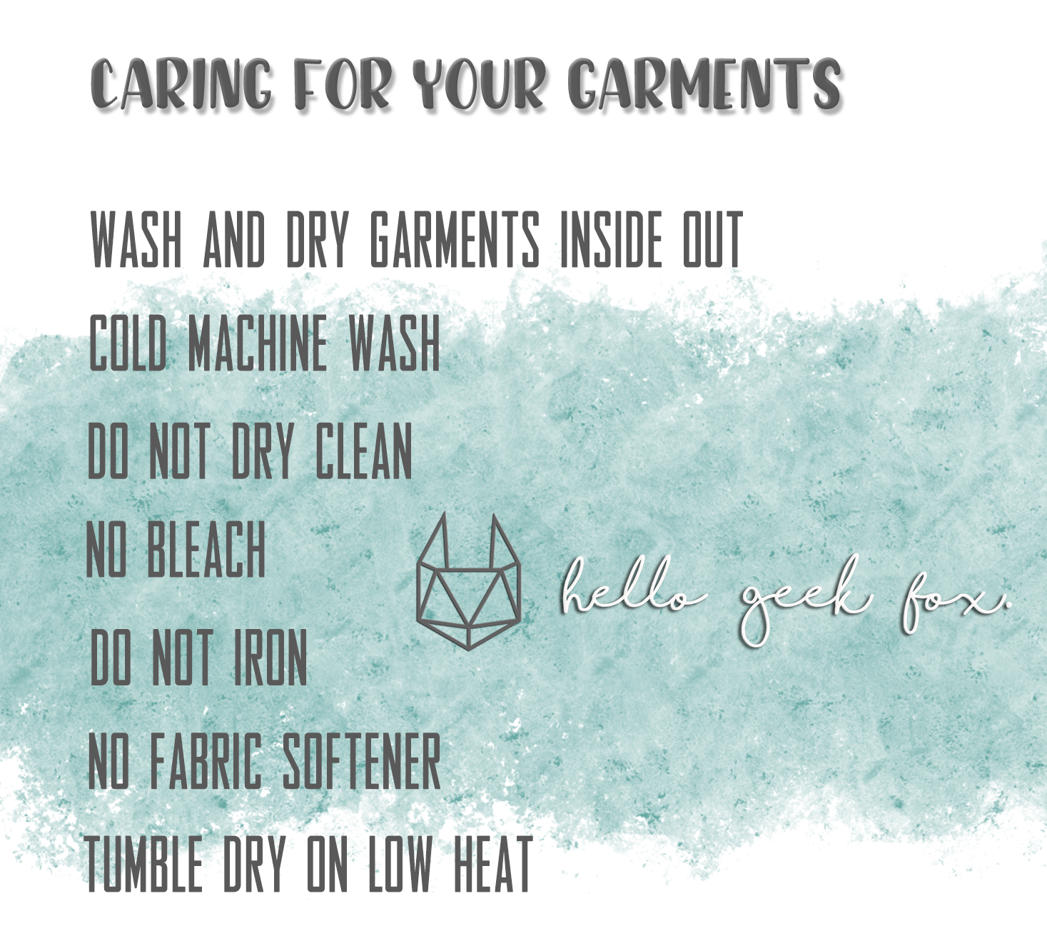 Below you can find all the instructions for caring for your Hello Geek Fox products.